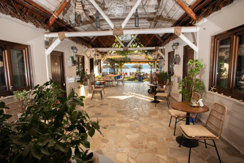 A cozy beachfront café serving coffee, snacks, and drinks.